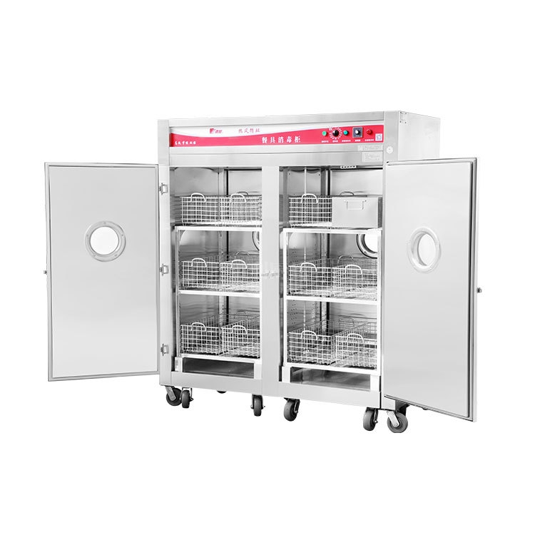 ■通道式远红外线热风循环餐具消毒柜采用双通道对开四门设计,可应用于卫生隔离式设计,前进后出,干净整洁,节约用地,高效实用。